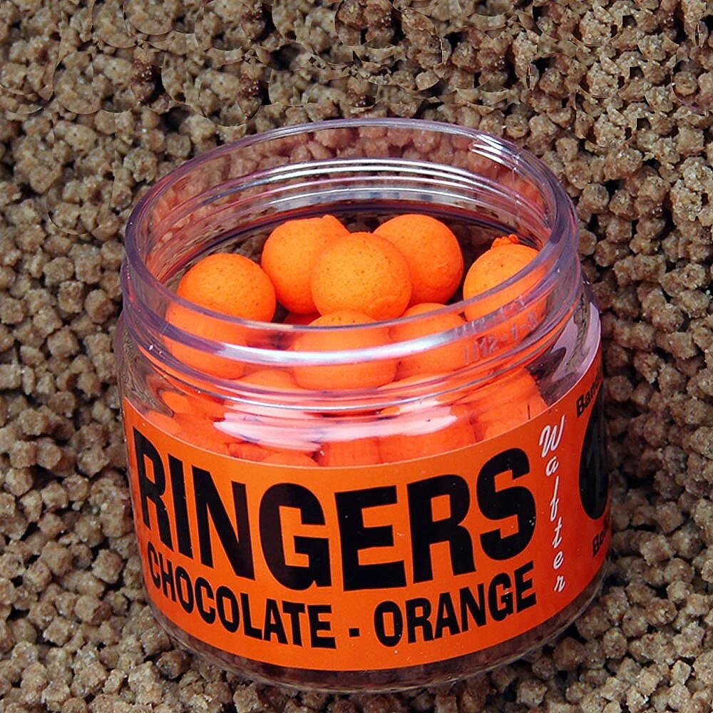 Ringers Wafters zijn semi drijvende boilies. Deze 10mm Orange gekleurde en met een chocolade smaak voorziene boilie’s blijven op het gewicht van de haak “zweven”. Zeer aantrekkelijk en gegarandeerd succesvol in koud water.