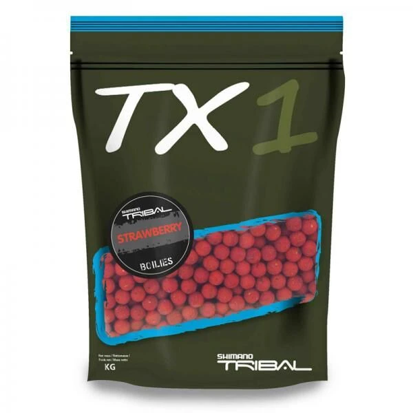 Koop twee verpakkingen van Shimano TX1 Strawberry Boilies van 1 kg en ontvang een GRATIS verpakking van 1 kg!